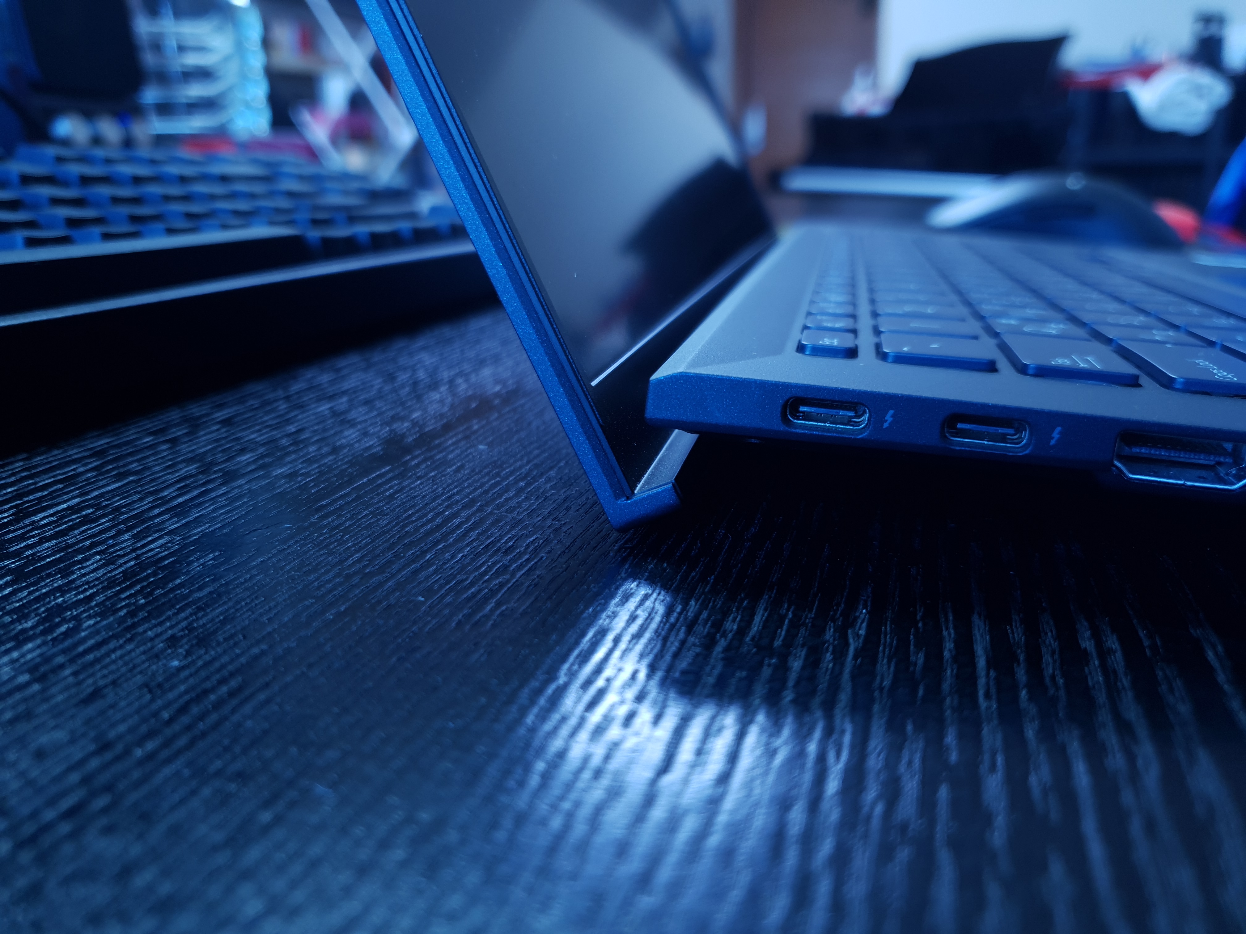 충전은 C타입으로 합니다. 양 쪽 어느쪽에 꽂아도 정상충전이 가능하고, 썬더볼트와 PD충전을 지원합니다.