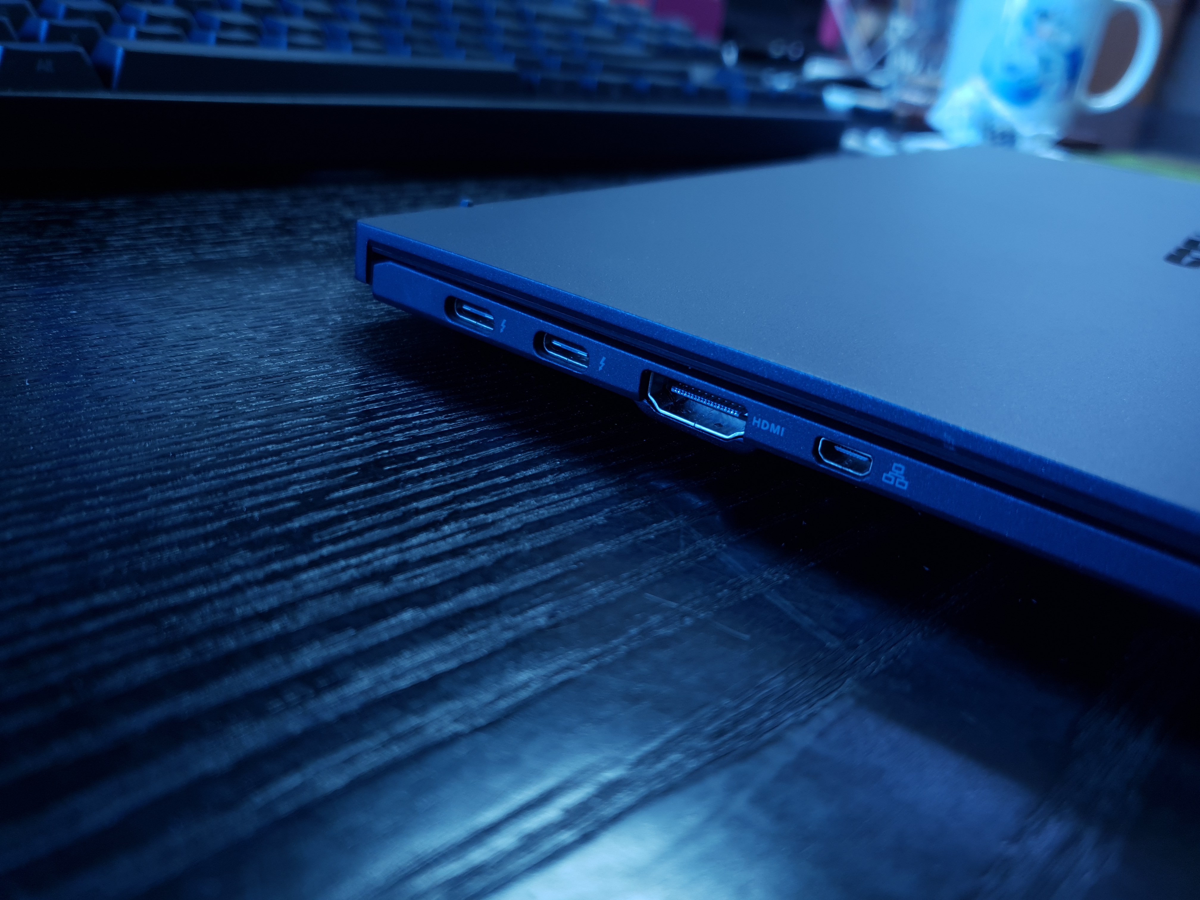 USB-A 한 개, USB-C 두 개, 마이크로 5핀, HDMI, 캔싱턴 락, 3.5mm AUX.