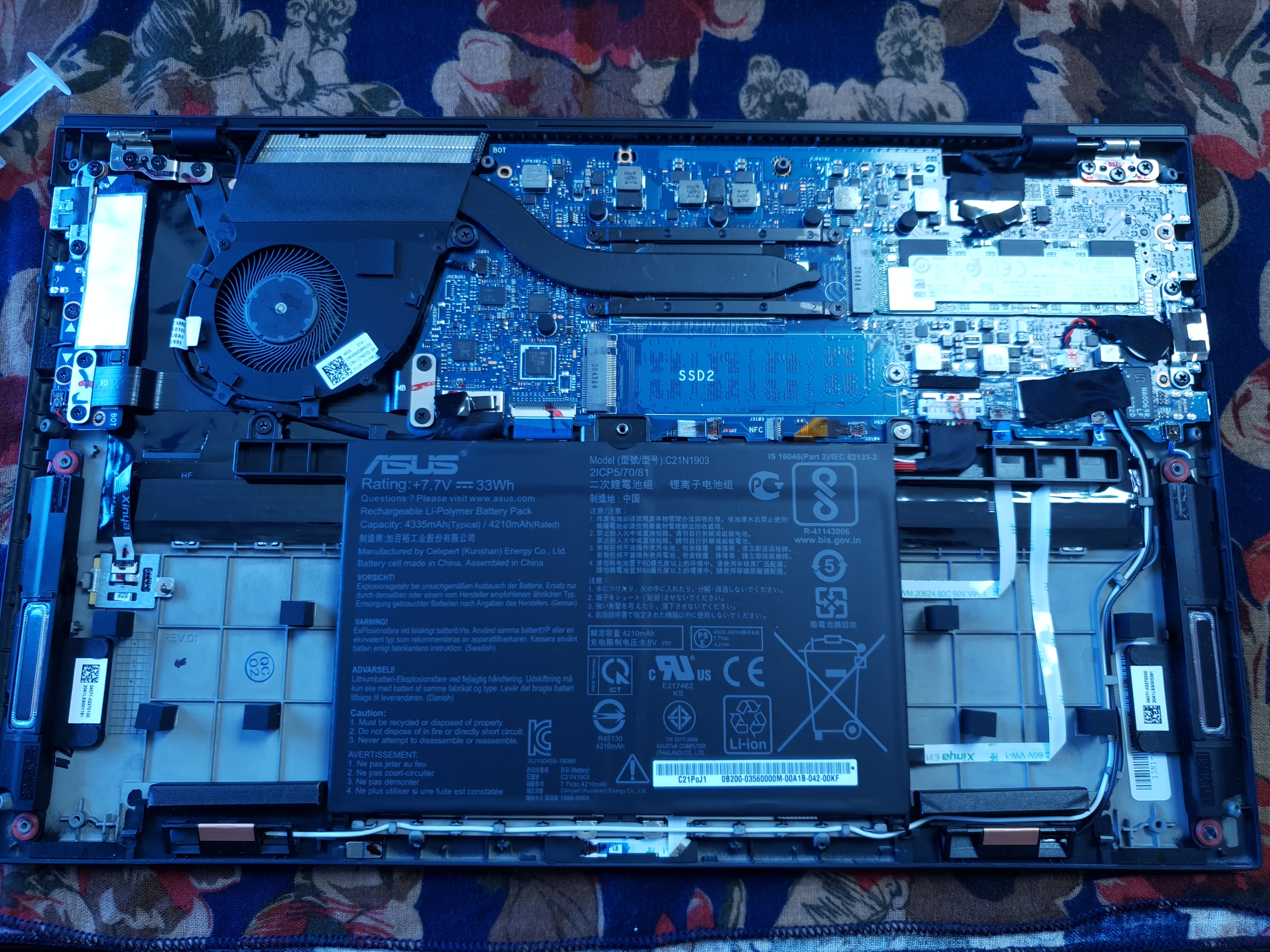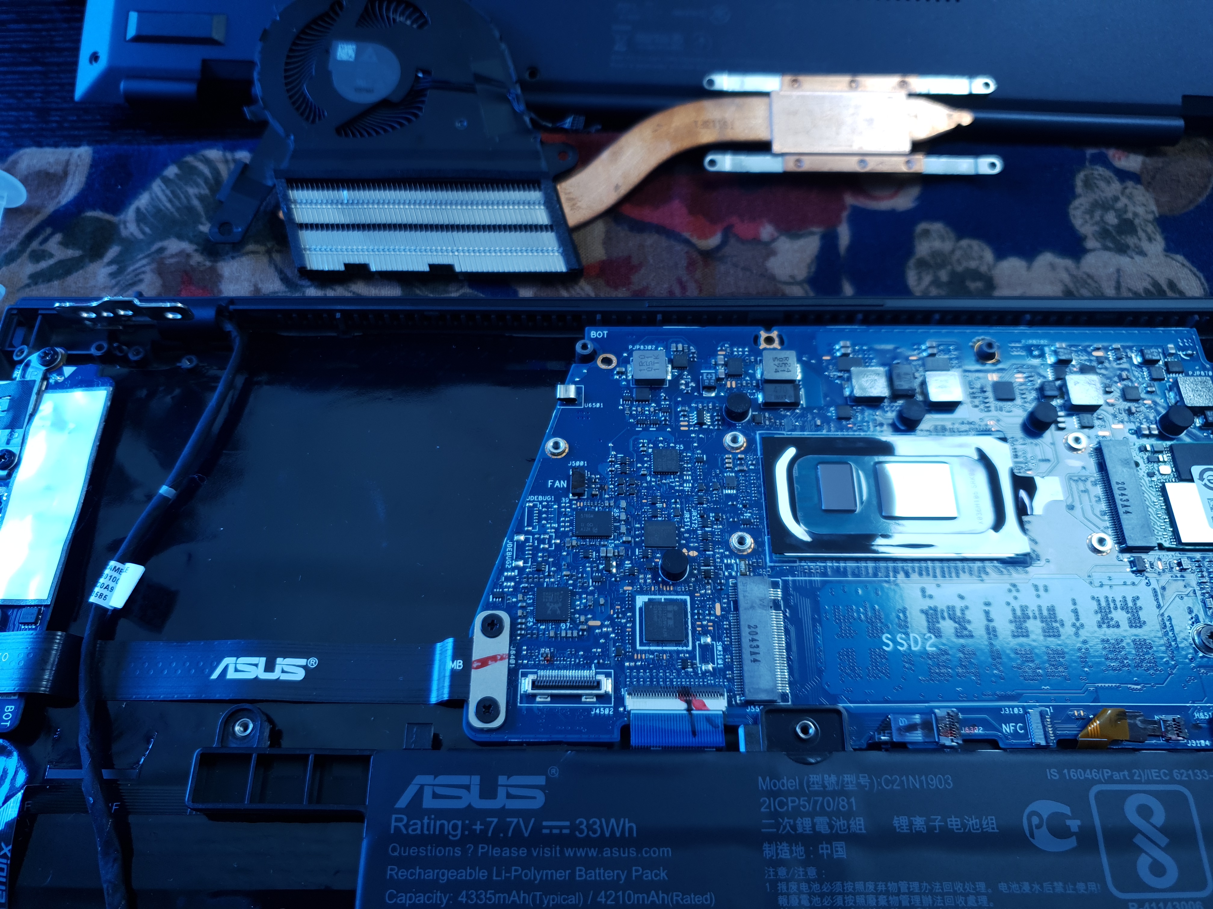 쿨러 크기는 작은 편이고 특별한게 없네요. 소형 초경량 노트북이라 별 특징이 없어요.
