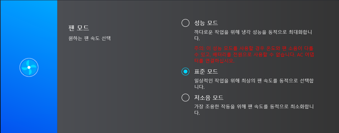 My ASUS라는 앱인데 여기보면 팬 모드라는게 있습니다.