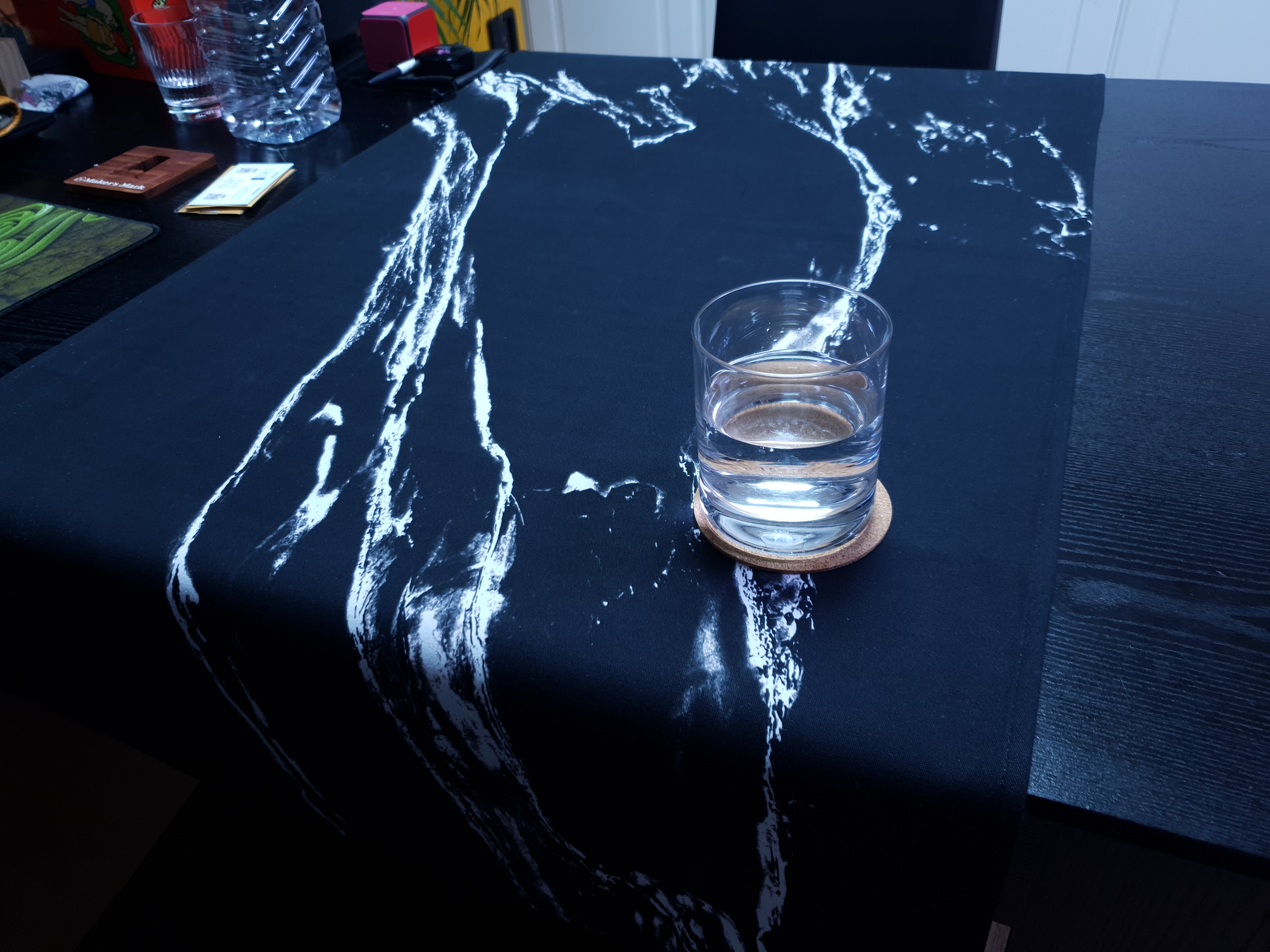 검은 테이블에 포인트있는 검은 식탁보. 로망이 있네요.