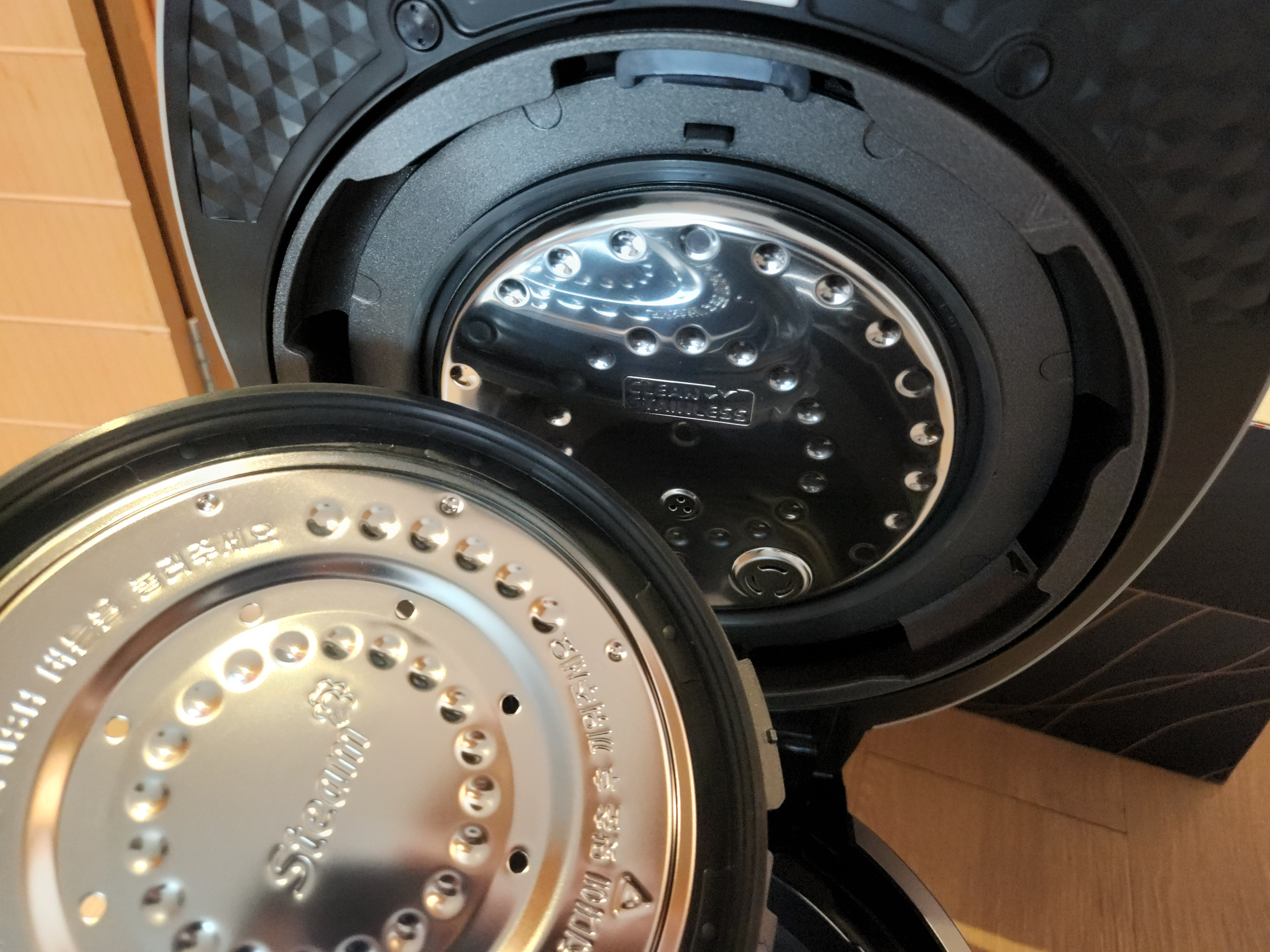 역시 IH식이라 제품 하부가 간단하네요. 열판식은 아래 전체가 금속제거든요. 가열을 해야하니깐요!