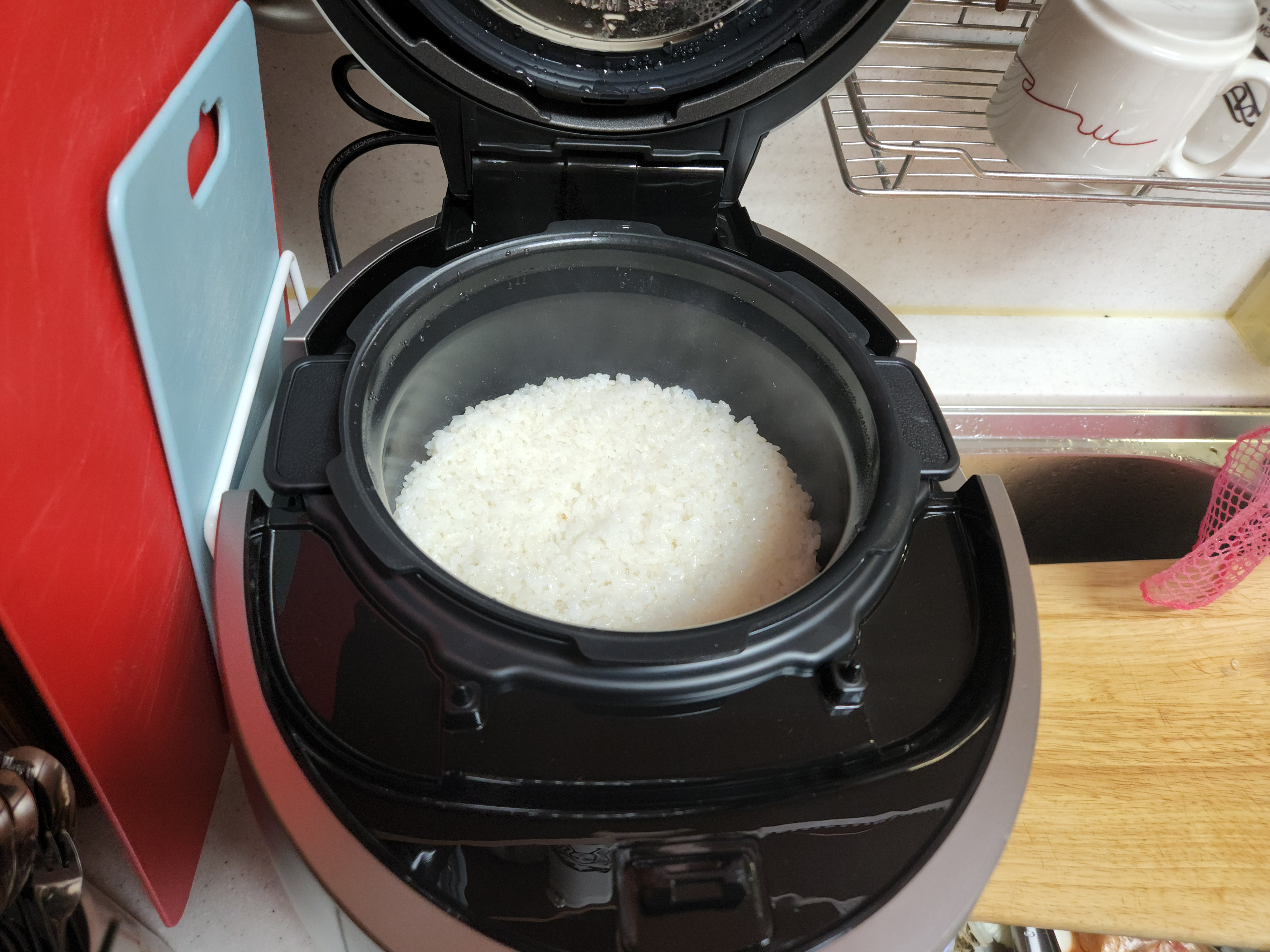 상판은 적절하게 두껍습니다. 다른 저가형 밥솥은 이 부분이 부실해서 좀 그렇죠.