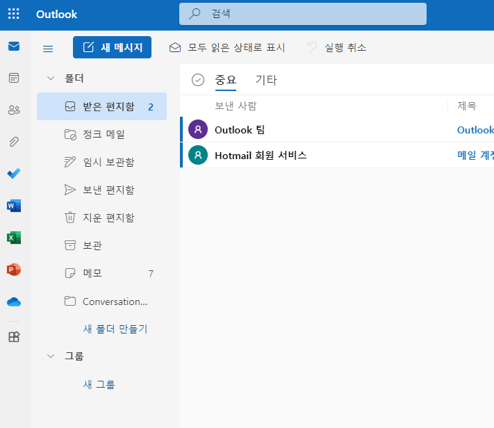 마이크로소프트 Outlook 사이트에 들어가서 스티커 노트와 같은 계정으로 로그인합니다.